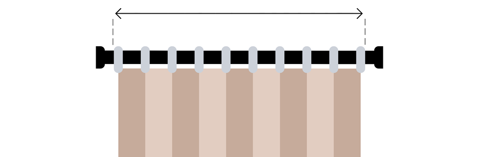 If you are measuring for the width of your curtains using a curtain pole as a reference, you should measure the length of the pole between the 2 finials (that’s a fancy word for the decorative bits on the end!)