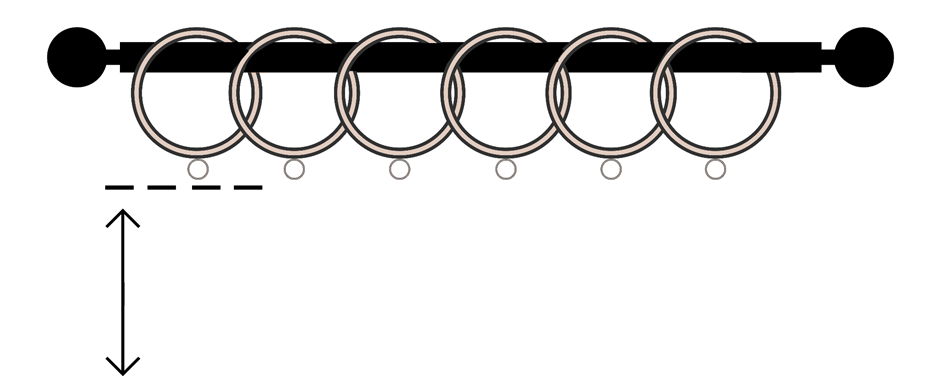 When measuring the height of a pencil pleat, tempo wave or pinch pleat curtain using a curtain pole, you should measure from the bottom of the curtain ring, to where you would like the curtain to finish at the bottom.