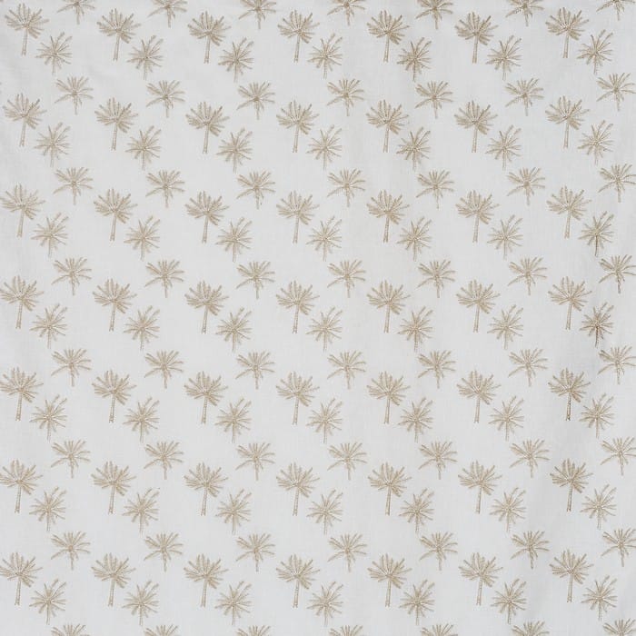 A beautiful eco friendly embroidered palm print in a mix of soft elegant colours, inspired by Palm Springs and beach scenes.